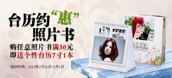 照片書滿30元即可0元得時尚個性臺歷7寸!