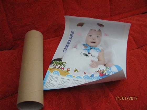 快,太快了,想不到才過兩天,快遞就送貨上門了。拿到包裹時的心情是恨不得馬上把它拆開,一睹為快。原來還擔心快遞過程中是否會把海報給弄皺的,隨著包裝袋撕開,心一下就安定下來。有福太體貼了,除了包裝袋外,外面還用一個硬紙筒給裝好,哪怕再粗魯?shù)目爝f員咱都不怕!