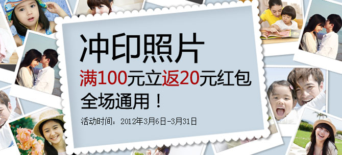 照片沖印滿100元即送20元紅包!再買再送!紅包全場通用?。?font color="#ff0000">用于DIY商品,不與其他優(yōu)惠同時使用)