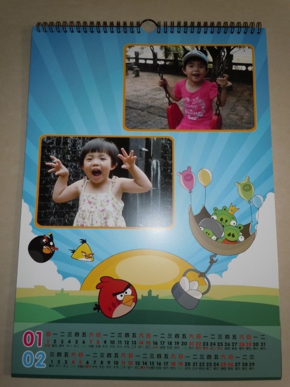 去年年底參加了搖籃網(wǎng)的有福個(gè)性掛歷活動(dòng),獲得了優(yōu)惠券。因?yàn)槟昵熬突乩霞胰チ?,一直等到二月中旬回來才看到?yōu)惠碼,就趕緊找了一些照片,選了今年最流行的【憤怒小鳥】模版,也是為了多放幾張照片,預(yù)覽了幾遍感覺不錯(cuò),馬上上傳訂購(gòu)了。