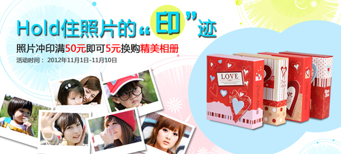 照片沖印滿50元(不含過(guò)塑)即可5元換購(gòu)精美桃心立體相冊(cè)!