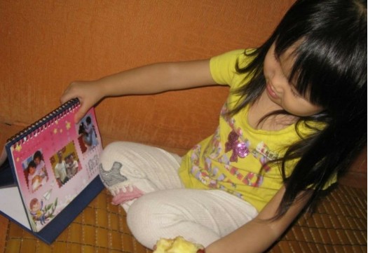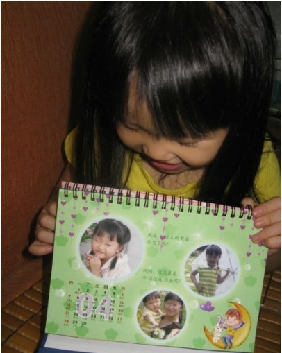 瞧這小樣,看到自己的相片在這小臺歷上,晚上睡覺都不敢放下。
