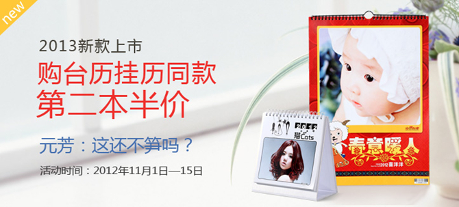 即日起,購?fù)钆_歷掛歷即可享受第二本半價活動!