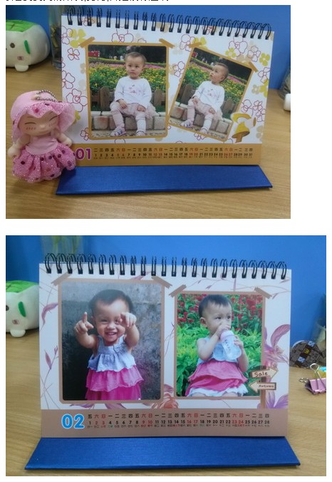 我這本臺歷的名字叫成長的印跡,主要收錄了女兒幾個不同月份的照片,每掀一頁,每過一個月,都可以看到女兒的成長,變化,真是很有趣哦