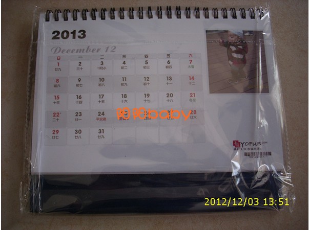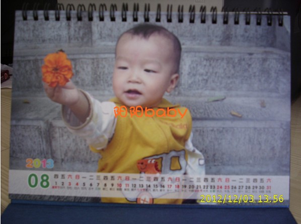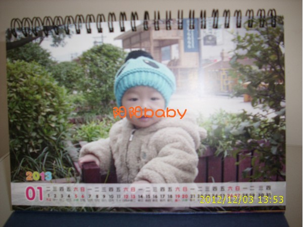 剛剛收到,拍完片片后就上來分享了。嘿嘿,很漂亮,好喜歡。 猜想等會(huì)兒兒子午睡醒看到后會(huì)是什么反應(yīng)呢?,呵呵。 我選是的空白模版,挑選了24張寶寶照。 可惜的是,在制作時(shí)我忘了把重要的日子做上特殊的標(biāo)記了。 按月份來,一月很冷,我就選了張寶寶穿的很厚實(shí)的照片。6、7月份很熱,放了張洗澡澡的裸照。在新年、和他生日的月份送上了我這當(dāng)媽的祝福,希望兒子能喜歡喔~