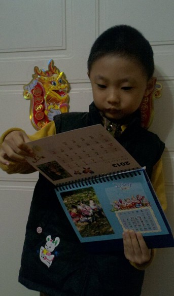 寶貝兒子與臺(tái)歷的合影: