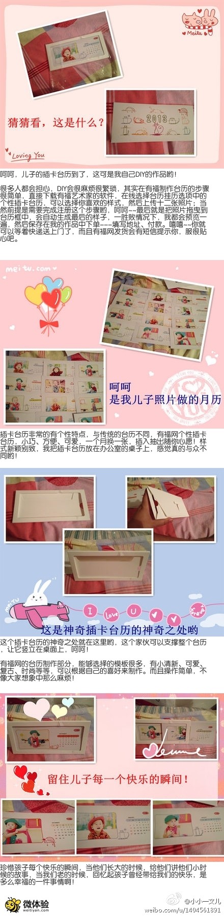 很高興收到了在論壇上面申請的有福網(wǎng)的插卡臺歷,我很喜歡這種DIY設(shè)計的感覺,媽媽們都會用心做出這個世界上獨一無二的自己寶寶的作品。