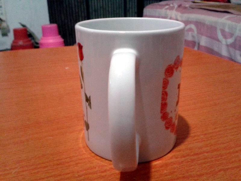 杯子的側(cè)面,把手左邊有一朵玫瑰花,老公竟然沒有給我來個特寫鏡頭
