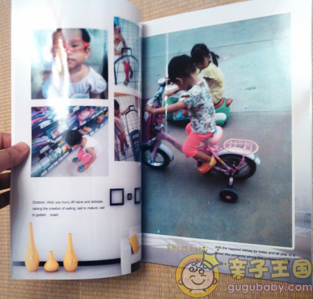 我只想說(shuō)我的個(gè)性雜志要比試用廣告上的圖片好看的多的多,材質(zhì)也是非常出眾的照片紙,非常完美。唯一遺憾的是我家寶寶的照片不是很多,而且都是我平時(shí)用手機(jī)拍的,為了趕在試用報(bào)告之前完成,我實(shí)在是有點(diǎn)濫竽充數(shù)的嫌疑。不管怎樣,一起來(lái)看看的我家寶寶的雜志把!