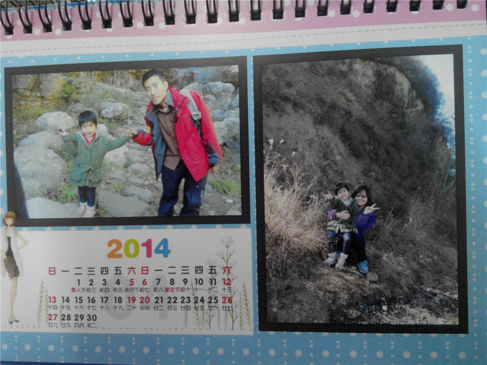 得知自己獲獎(jiǎng),就趕緊找照片,做照片,由于是第一次在有福網(wǎng)DIY這種臺(tái)歷,沒(méi)有經(jīng)驗(yàn),都是摸索著來(lái)的,做到一半照片不夠了,還得找照片,或者發(fā)現(xiàn)橫版豎版的比例不是很搭,還得臨時(shí)調(diào)換照片,還好,在網(wǎng)上這些操作都很簡(jiǎn)單,一學(xué)就會(huì),一看就能懂,優(yōu)媽還是很快做好了模板,跟小編要了優(yōu)惠碼,就給有福網(wǎng)發(fā)過(guò)去了。大約過(guò)了一個(gè)星期,我就收到了做好的臺(tái)歷,印刷很清晰,臺(tái)歷很精美,包裝很結(jié)實(shí),優(yōu)子小朋友看到了驚呼:啊,我的照片,我的臺(tái)歷!