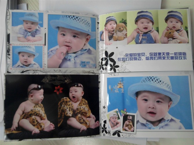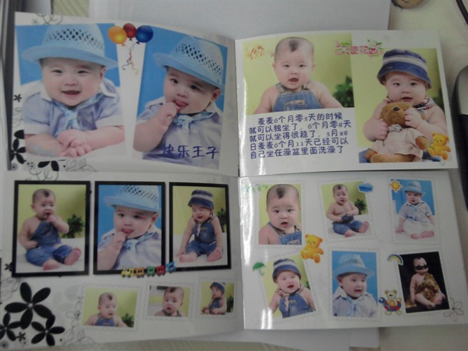 曬曬在有福網(wǎng)做的照片書,大小是6寸照片那么大,還可以設(shè)計(jì),一共16頁只要10塊錢,可以設(shè)計(jì)的好漂亮,還可以放好多張照片,壓了膜,也不怕褪色,那種光膜海鮮的照片很亮,顏色也好看,平時(shí)裝在包里,給別人看的時(shí)候好方便,第一次給寶寶的百日照做了兩本,結(jié)果給寶寶的幾個(gè)太姥姥看,都想要,可是那么漂亮的我都舍不得給,這一次我一起做了4本,給太姥姥們一人發(fā)一本,可把他們高興壞了!沒事就拿到樓下給別的老太太們顯擺自己的重孫子呢!想做的話就百度“有福網(wǎng)”就可以了,現(xiàn)在郵費(fèi)才3元,洗照片也很便宜,6寸照片只要4毛5,質(zhì)量也不錯(cuò),可比我家門口的照相館強(qiáng)多了!