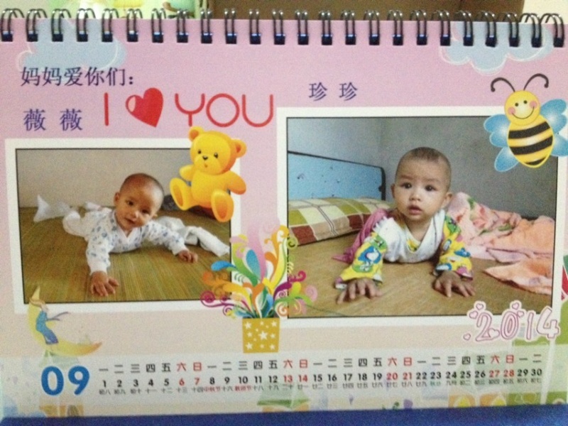 這是2014年的第一本臺歷,本來寶爸要帶到公司去用,我沒同意,害怕他亂寫亂畫的破壞了臺歷,我還要當相片冊為寶寶寶留下了呢!記錄著寶寶的每個精彩瞬間!