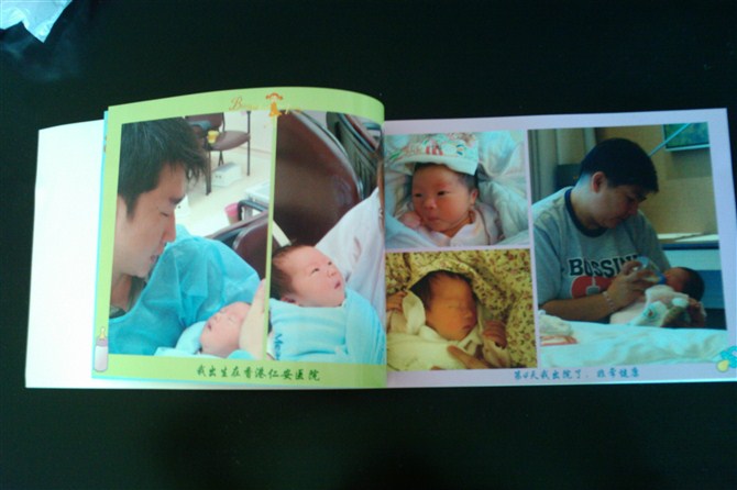 自己做相冊還是有點好處的,可以自己隨心所欲的發(fā)揮。這本相冊,我把有有寶貝從出生到4個多月的照片按照時間的順利編排,第一張就是剛出生的,然后是3天、4天、10天、23天。。。而且相片底下都依次的有時間注明以及媽媽用寶寶的口吻寫的字語。這樣寶寶以后長大在欣賞自己照片的同時,也可以不費功夫的就知道這是多大時候的照片。媽媽待寶寶長大后,也可以看著相冊回憶寶寶以前小小的模樣,還是很不錯的。