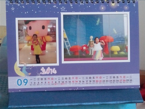 昨天,我終于收到了盼望已久的2014年個性臺歷。一打開,就迫不及待地看效果,一頁頁翻了個遍。天哪,真想擁抱有福網(wǎng)的工作人員啊。他們果然精心為我裁切,臺歷上面的日期全部能顯示出來!有的頁面我知道是裁切掉一點兒的,不過,日期沒被切掉,切掉的是另一邊的沒內(nèi)容的部分。足見工作人員的細心。