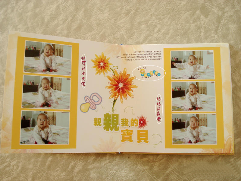 可是那幾天我特別的忙(家里農(nóng)忙),而且寶寶從出生到現(xiàn)在已經(jīng)拍了有上千張的照片了,挑照片也是一個(gè)大工程啊!我利用空暇的時(shí)間挑照片就花了一天,然后才去有福在線設(shè)計(jì)的.里面有好多的選擇,仔細(xì)看過之后我挑了一個(gè)我最喜歡的模板,親親我的寶貝,我覺得顏色比較鮮明20頁,48張照片