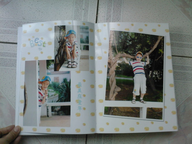 照了不少照片,有四十多張,這次我們選擇在有福網(wǎng)上給他DIY做了一本相冊(cè)。把自己喜歡的照片全都放了進(jìn)去,不用向以前在攝影店里擔(dān)心超出套系數(shù)量還要額外補(bǔ)錢(qián),呵呵。而且大姨的DIY 水平很高,做出來(lái)的相冊(cè)真的很漂亮,印刷裝訂都很專(zhuān)業(yè),而且只要一百多塊錢(qián),真是超值!