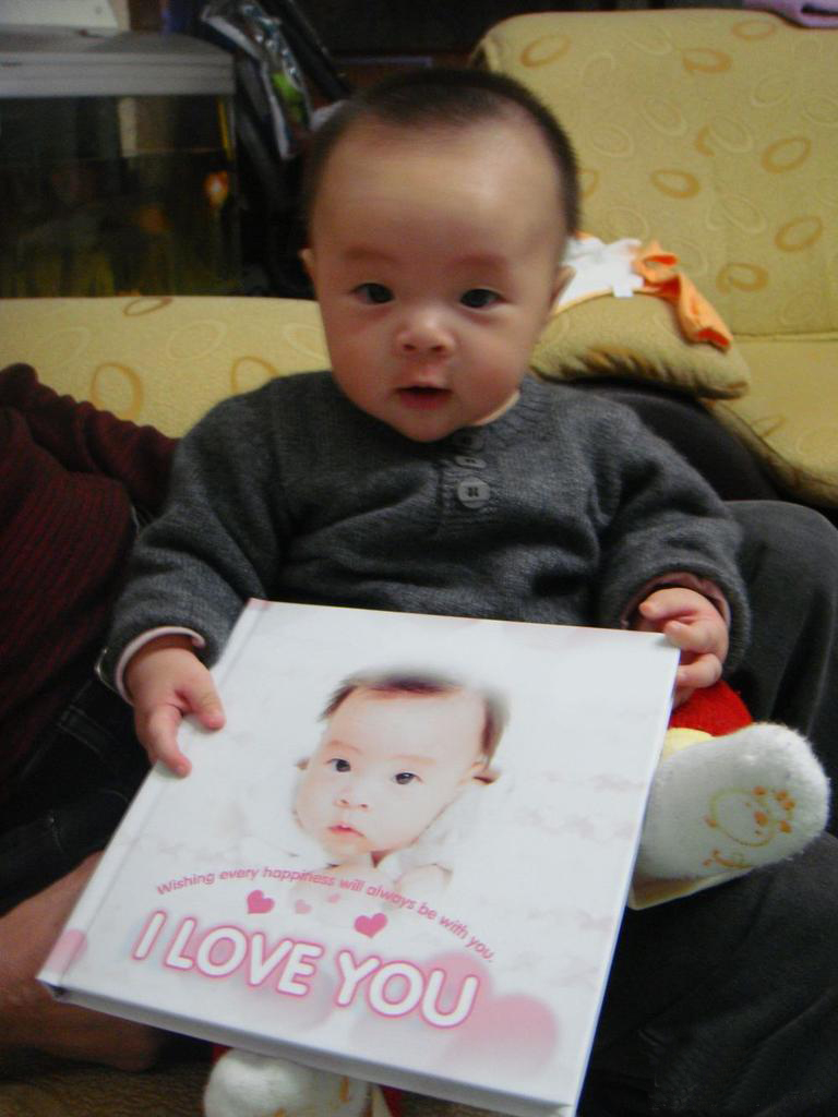 小家伙很喜歡???,不像是前個月那樣偶爾有意無意的微笑,而是用憂郁的眼神看著你!