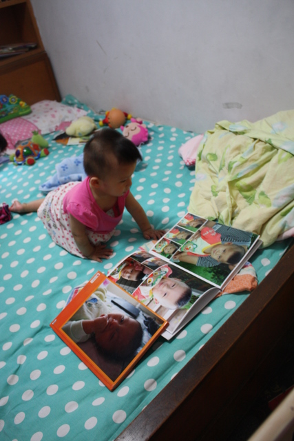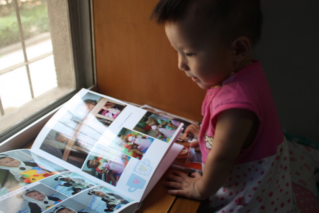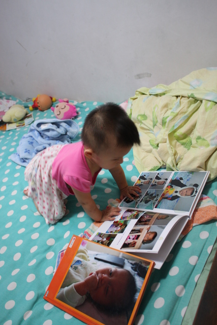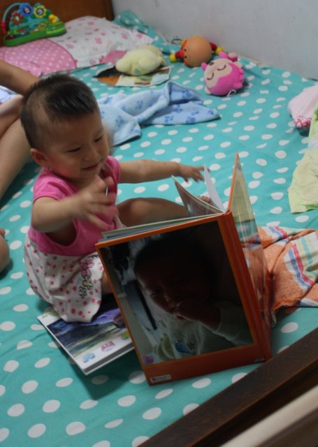 這不,娃自己也抱著自己的寫真集,看的不亦樂乎。