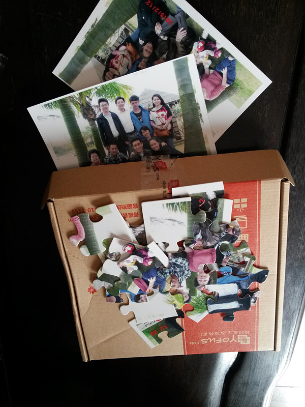 收到貨那時(shí)候還是有小驚喜,原來多了兩張七寸大的原照片,是贈(zèng)送品。非常清晰,而且可以給小孩對(duì)照照片慢慢來拼圖。先曬這珍貴而且可愛的禮物,相信小孩子能夠拼出這非常意義的全家福。