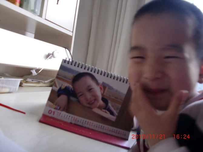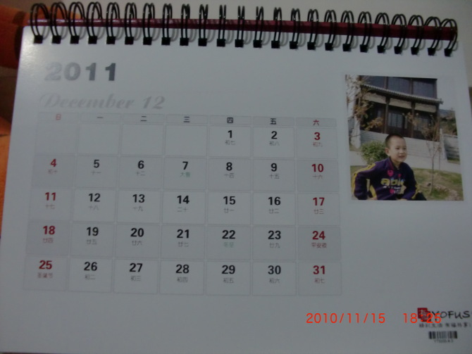 議兒和臺歷的合影,這本有福的臺歷將在2011念得365天里伴隨著議兒哦!