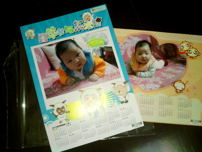 下面是我用手機(jī)拍的成品,(*^__^*) 嘻嘻,水平問題,拍的不清楚!第一張是2張年歷海報(bào),下邊是些沖印的照片
