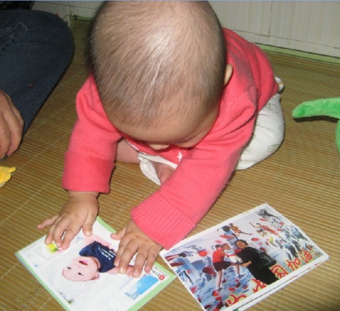 小小的女兒就懂得對照片書有興趣了哦。哈哈!
