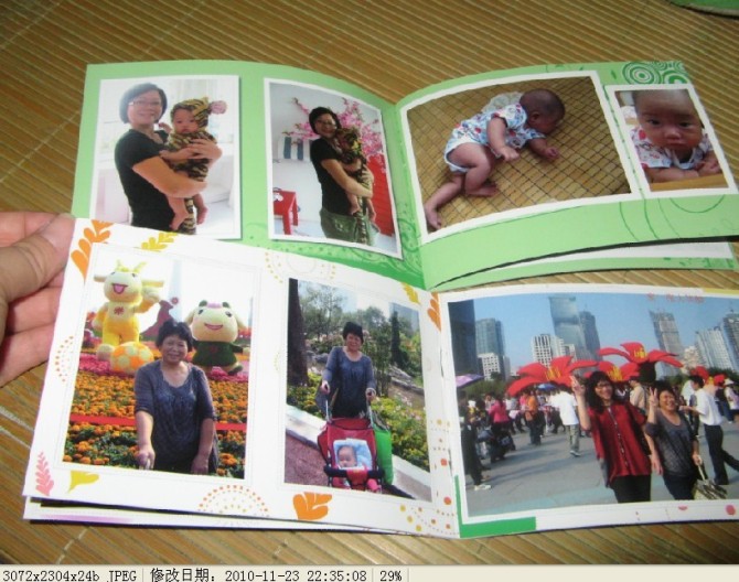 其實在有福里操作非常簡單。只要登錄有福網,看見DIY軟件下載,很快就可以下載完成了,哇,打開一看,很多的分類哦,可以做杯子,海報,相冊,臺歷、、、、、我選擇了照片書,打開模版,有好多啊,不知道選擇哪個,個個都好看,個個都想要,于是我選擇了“奇童夢樂”--代表寶寶健康快樂成長。雖然這圖框放的相片不多,但是圖框比較大,把照片放上去也比較清晰,我把挑好的照片傳上去,就開始了我的DIY之旅。我先把選好的模版看了一遍,在挑選哪個照片樣放在哪個位置,只要按住那照片往圖框上拖就行了,照片的大小可以調,還可以加入文字,在寶寶生日的那天做個標志都可以,操作十分的簡單,而且效果非常好,很快,我就完成了,在準備下訂單前我瀏覽了一遍自己親手DIY的照片書,感覺是非一般的感覺啊,下單后,我還在猜測不知道還有沒有什么需要操作的嗎,就找了在線的客服,客服很熱心的為我解答,說訂單成功了,我等著收就可以了。