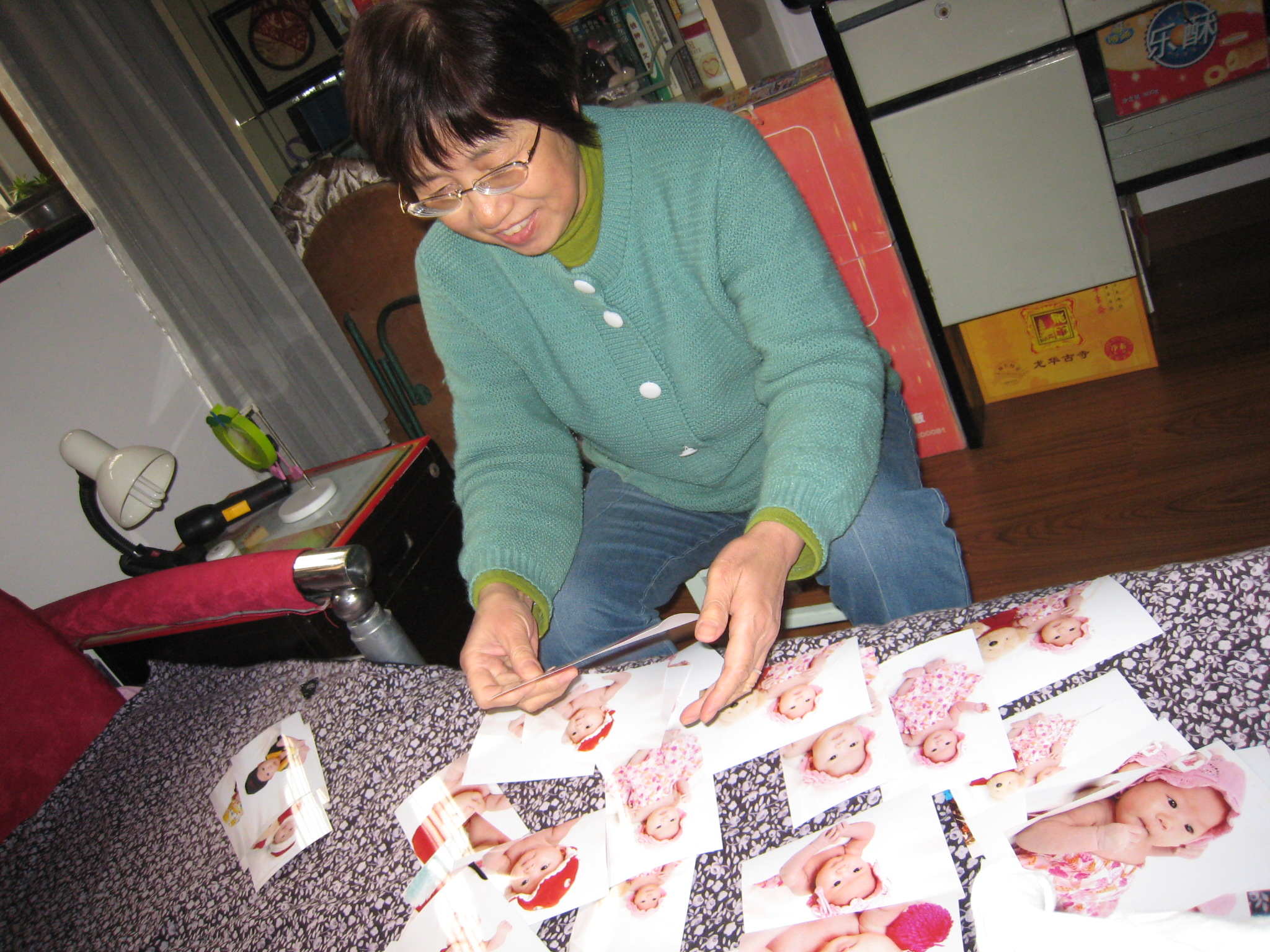 幸福的媽媽有原片,又在網(wǎng)上找到了有福網(wǎng),沖印照片的好地方呢,把你的照片上傳又沖印了一份,這是媽媽第一次使用他們的服務(wù),他們很快的把沖洗好的照片郵寄回來,印得真不錯(cuò),價(jià)錢也便宜。當(dāng)它呈現(xiàn)在大家面前的時(shí)候,我可以看到每個(gè)人臉上都帶著幸福的笑容。現(xiàn)在外婆正在床上攤開你的照片一張張地挑選呢,真是贊不絕口啊,好像想把每張都放進(jìn)自己的相冊中,呵呵,老媽,您別太貪心了,給我婆婆留幾張吧,回頭在上有福網(wǎng)洗了給您寄去,嘿嘿……