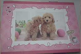 給家里的兩只小泰迪做了一本紀(jì)念冊(cè),記錄著它們生活的點(diǎn)滴,非常有愛(ài)的小泰迪!這本冊(cè)子的質(zhì)量不錯(cuò),裝訂也挺精美的,內(nèi)頁(yè)的紙張也不是普通的紙,介紹說(shuō)的好像是德國(guó)的古樓紙,雖然不是特別了解,色彩非常的飽滿!