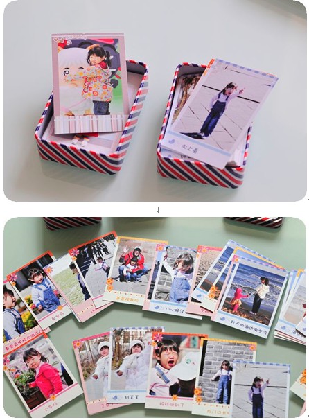 后來,上網(wǎng)找到了有福的LOMO卡片這個(gè)產(chǎn)片,最后我給寶寶定了20盒LOMO卡,每盒里可以沖印36張照片。雖然LOMO卡很小,跟撲克牌一樣的大小,不過很可愛,可以放到鐵盒里存放。