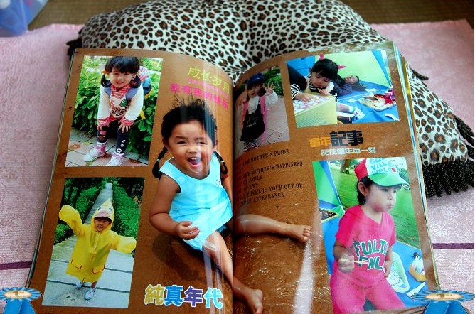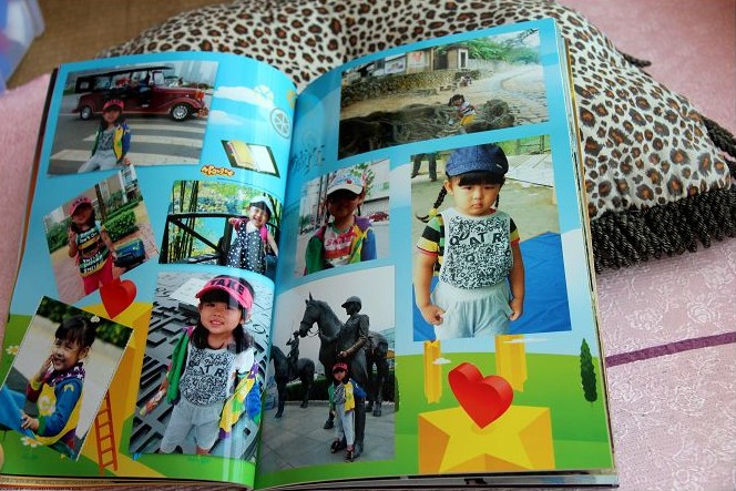 要說這個(gè)工作量還是蠻大的,要把所有的像片,從沒洗過的那時(shí)候開始算,一個(gè)月一個(gè)月的整理出來。什么叫整理出來?就是把所有的像片看一遍,在成百上千的像片里挑出來要洗的,然后還要全部PS好。把這些處理好的像片,全部備用后。還要去下載做照片書的素材,比如背景圖片之類的。然后按照軟件,一張張像片嵌進(jìn)去。我這本,是60頁的照本書。里面容納了252張像片。效果還是不錯(cuò)滴說。