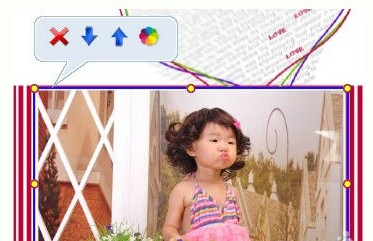 5、然后把喜歡的照片放在自己覺得最合適的空白片,只要輕輕拖動一下即可。點擊照片可以看到有四個操作圖標。點擊最后一個就是可以編輯了。
