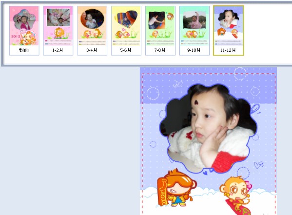 選擇好傳統(tǒng)豎式掛歷 7頁(yè)的就可以進(jìn)入選擇自己想要的模板了,有好多種類的,我選擇的時(shí)卡通類的小猴子的那個(gè)模板,我覺得不錯(cuò),很適合寶寶的。