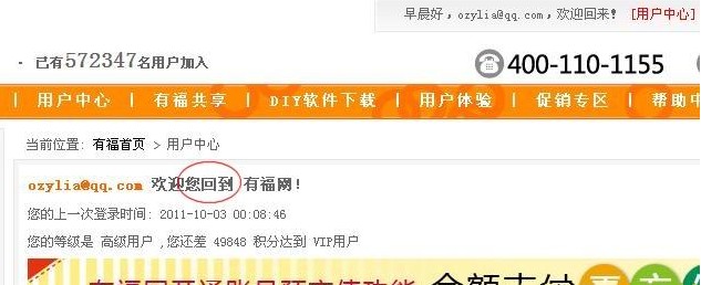 2、因?yàn)槲乙郧白?cè)過(guò),所以看直接登錄了。(很喜歡有福網(wǎng)用的“回到”這個(gè)詞,讓我感覺(jué)是離家的游子終于回了家。)