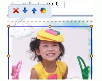 把照片拖進(jìn)去后,如果位置不合適,可以雙擊照片,然后便會(huì)進(jìn)去編輯框。也可以單擊,出現(xiàn)如下的畫(huà)面,選擇七色球也可以進(jìn)去喲。