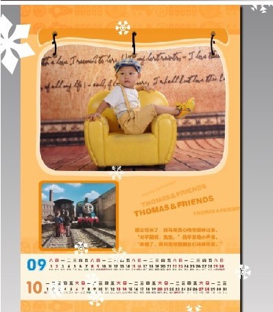 然后點(diǎn)擊這個(gè)模板就可以開始制作了,這個(gè)掛歷總共有七張,我為了做的漂亮一點(diǎn)兒,特意選了兒子兩歲里在照相館照的藝術(shù)照,這樣一來,以后掛到家里,親戚朋友來了都會(huì)羨慕不已的哦!