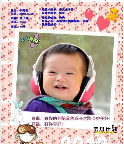 我的封面添加了寶貝的個(gè)人簡歷,外加對(duì)“有福”的贊美詞,填補(bǔ)了封面空洞的地方,充分的利用空間,很有紀(jì)念意義哦!