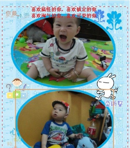 我選擇的是卡通類型的,孩子嘛就該是繽紛多彩的童樂世界,卡通可愛就是最具幻彩斑斕的代表。而選擇兔斯基是因?yàn)樗梢苑诺南嗥嘁恍梢哉洳氐拿篮没貞浘投嘁恍?。可是可選擇的卡通圖案貌似少了些,像我喜歡HELLO KITTY、流氓兔、蠟筆小新、米奇等更多的卡通圖案都可以增加,這樣消費(fèi)者的選擇也會(huì)多一些,畢竟咱們紅人群里好多媽媽都是選同一款式的模版,感覺沒多大的區(qū)別,只是相片不同而已,有點(diǎn)“撞山”的感覺。再者2012年是龍年,掛歷的圖案也可以增加龍的圖案呀,這樣最具代表年份的屬相也顯得更加有意義。