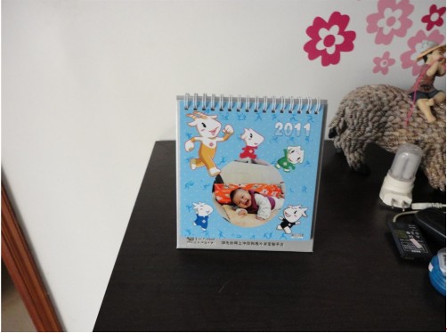 去年,給家里的寶寶制作了一本有福網(wǎng)7寸小臺(tái)歷。放在客廳的沙發(fā)茶幾上,十分合適。