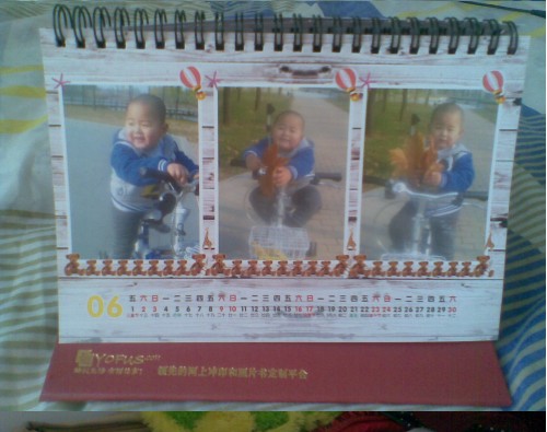 臺歷了。真的挺不錯的。印刷挺清晰的。還有現(xiàn)成的模板套用。直接在線設(shè)計就可以。省了我超大事情了。嘿嘿。去年做的7寸的。今年做8寸的。嘿嘿。一年比一年漂亮啊。放上偶家兩個小寶貝的相片。擺在家里最顯眼的地方。每個月看著眼前的寶寶。再和臺歷上的寶定比較??粗鴮殞氁稽c點的長大。幸福啊。太有紀(jì)念意義了。還超實用。我選了放相片最多的模板。嘿嘿。大愛??!