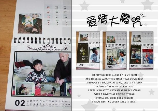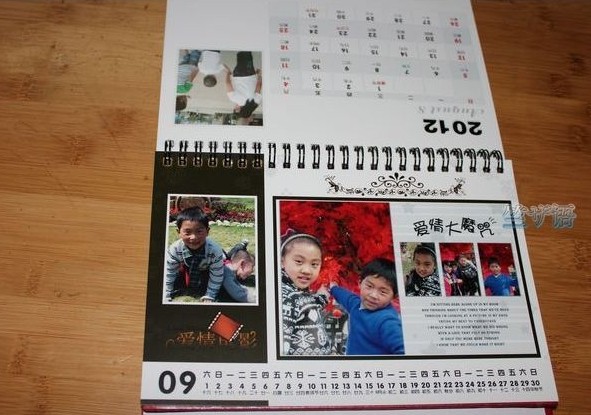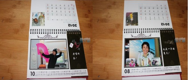 個(gè)性臺(tái)歷8寸的,就想著給父母做一個(gè)。平時(shí)不管是我家的孩子,還是我哥家的孩子,都要周末才會(huì)有時(shí)候去我父母家,因?yàn)槲腋缫膊皇歉腋改缸∫黄鸬?。所以呢,想做這樣一個(gè)臺(tái)歷,這樣每天老人都能翻翻。因?yàn)榕R時(shí)想到做的,我電腦里,侄女和侄子的照片也不多,我就用了幾張我父母的照片,有幾張給他們拍了還沒沖印出來(lái)。這會(huì)做臺(tái)歷就幫他們做過(guò)進(jìn)去得了。