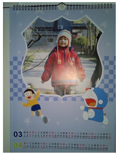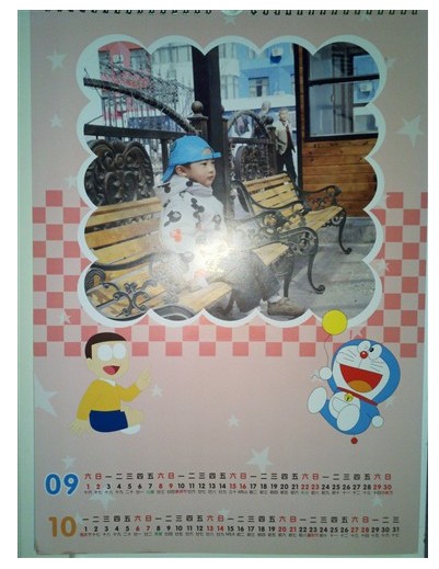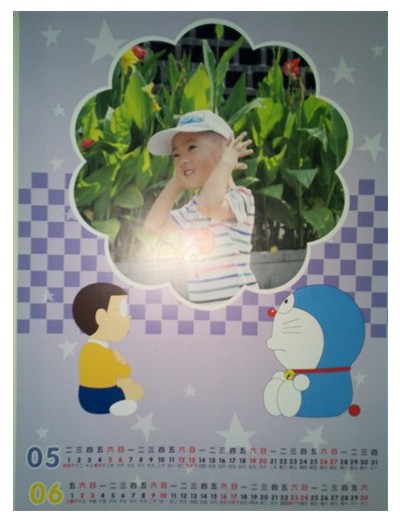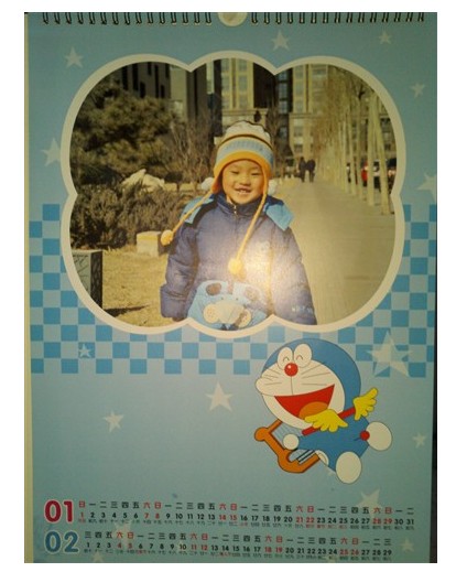 制作方法依然是在線用有福的制作模板,模板種類很豐富,我選擇了源源喜愛的機(jī)器貓背景,趕緊掛歷比臺歷的制作方法還要簡單,只需要把選好的照片直接添加到現(xiàn)成模板里就OK了,我統(tǒng)共花了10分鐘的時間,一本精美的7頁掛歷就制作完成,贊一個!